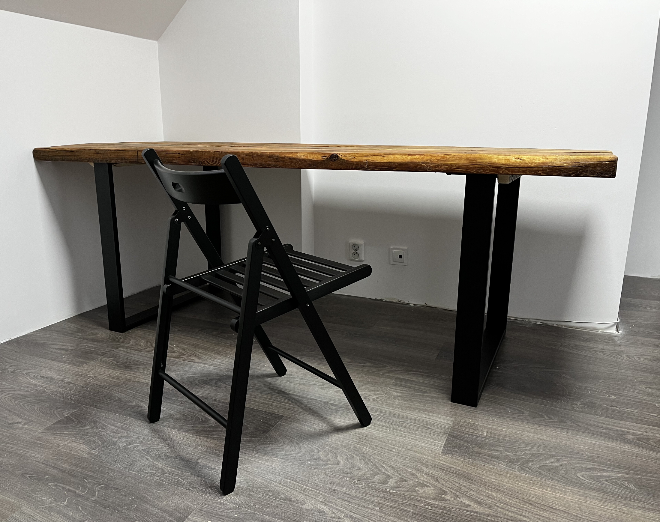 Wymiary: ok. 2,10 na 0,7 m, nogi od pana producenta, reszta własna. W przyszłości zapełni się komputerami, jest mocny, wiele utrzyma.